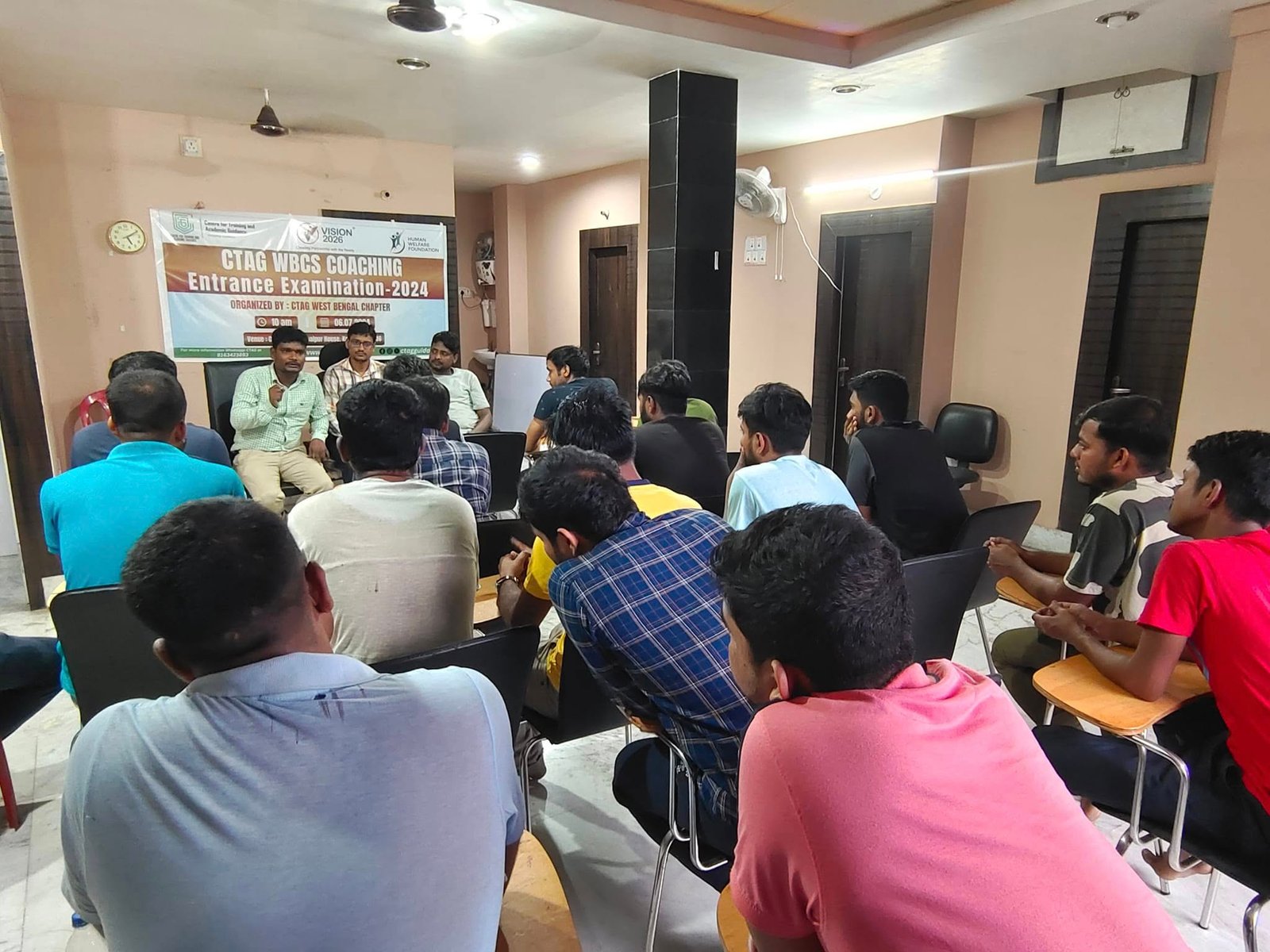 On 6th July 2024, the CTAG West Bengal Chapter conducted the second phase of the entrance exam for the CTAG WBCS Residential Coaching 2024 batch. The exam was scheduled from 10 am to 4:30 pm. After the exam, a counselling session was conducted by Mr. Ramjan Ali (WBCS Group A Gazetted Officer) and Mr. Md Iyarafiun Gazi (WBCS Group A Gazetted Officer). Other dignitaries present included Mr. Masud Alam (State Coordinator, HWF) and Mr. Faruk Ahmmad (Coordinator, CTAG West Bengal Chapter).