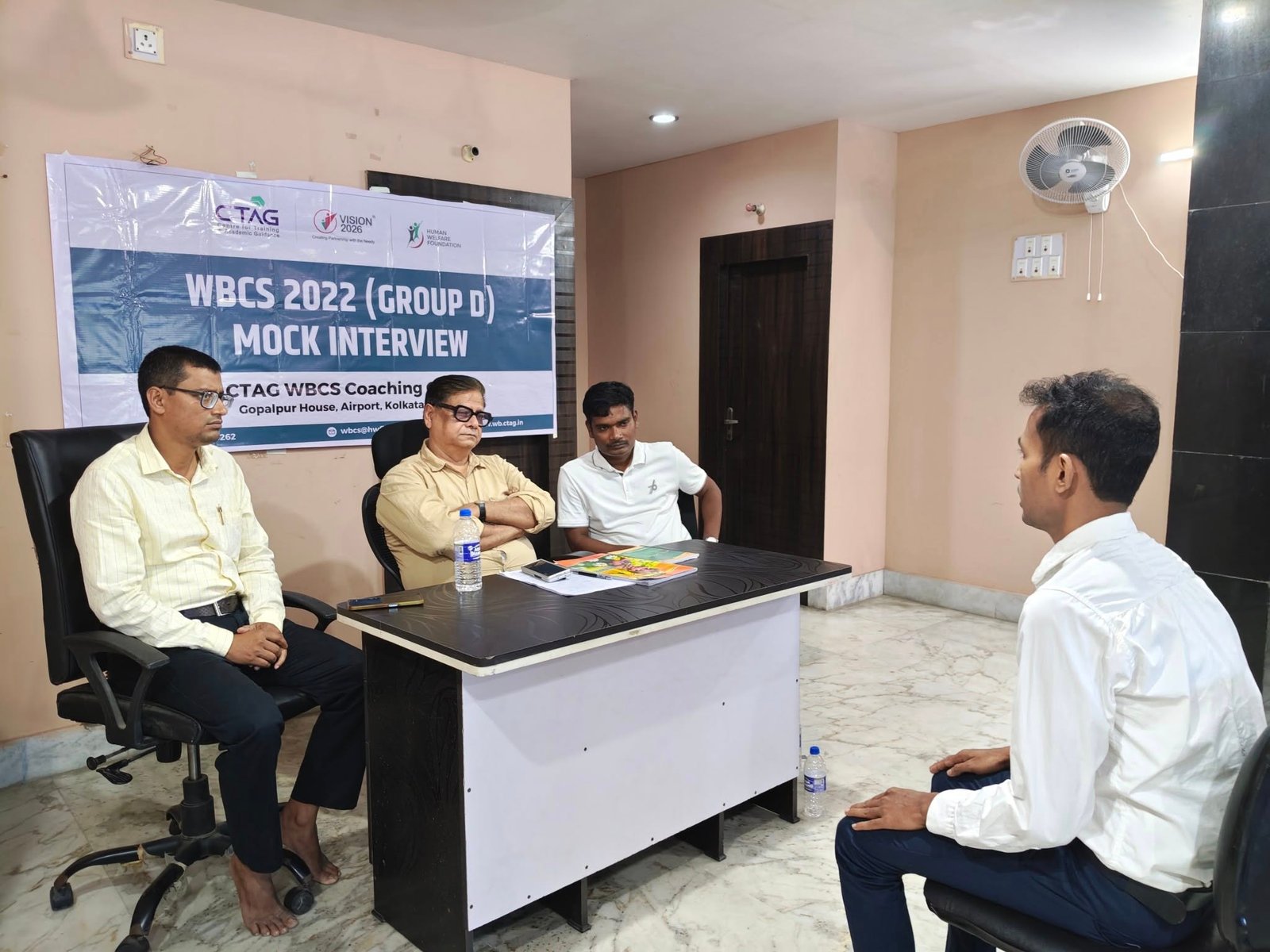 The CTAG WBCS Coaching Centre, Kolkata, run by the Human Welfare Foundation, conducted the WBCS 2022 (Group D) Mock Interview for eligible candidates. The session was organized to help aspirants gain real interview experience and improve their confidence before the final Personality Test. A panel comprising experienced IAS and WBCS officers evaluated the candidates and provided valuable feedback on their performance. The initiative was highly appreciated by the participants for its practical approach and guidance..